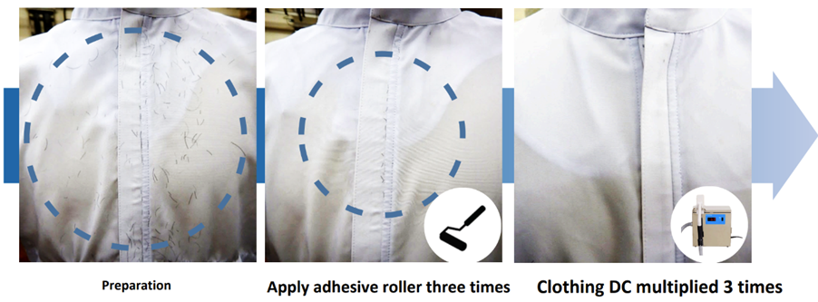 •เครื่องดูดฝุ่นและเส้นผม สามารถขจัดสิ่งสกปรก ในซอกมุมของชุด รอยพับ หรือในส่วนที่มีความโค้ง เช่น บนศีรษะได้ดีกว่าแผ่นกาว เนื่องจากใช้แรงดูดสุญญากาศ ดึงสิ่งสกปรกออกได้แม้ไม่ได้สัมผัสโดยตรง